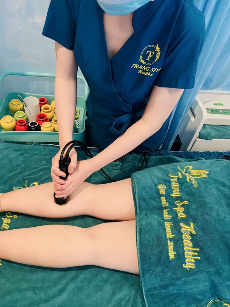 Bước 6: Giác hơi thải độc và tăng tốc độ lưu thông máu. Giúp đùi thư giãn và thon gọn hơn.